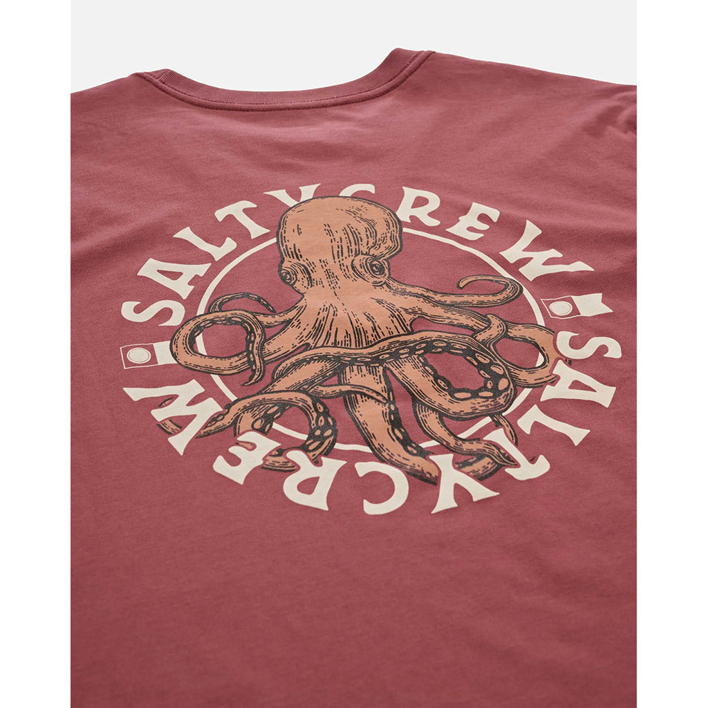 The Salty Crew Tentacles Premium SS Tee in Burgundy is made from soft spun cotton jersey, 160gsm in weight. Finished with Salty Crew clamp label at sleeve hem. Screen printed front and back prints.