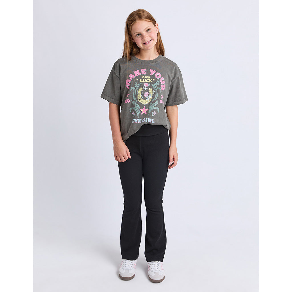 The Lindy Legging by Eve Girl is a must have. The perfect flare, where fashion meets functionality and comfort. Crafted from a stretchy rib fabric, featuring an elastic fold over waistband.