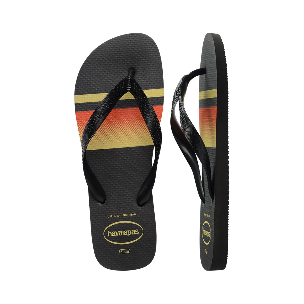 Meet top basic! A twist on the classic Havaianas top thongs, this pair adds a touch of colour through a gradient stripe that pops. Perfect for all day comfort, these thongs offer a durable option to take you from the beach to the streets.