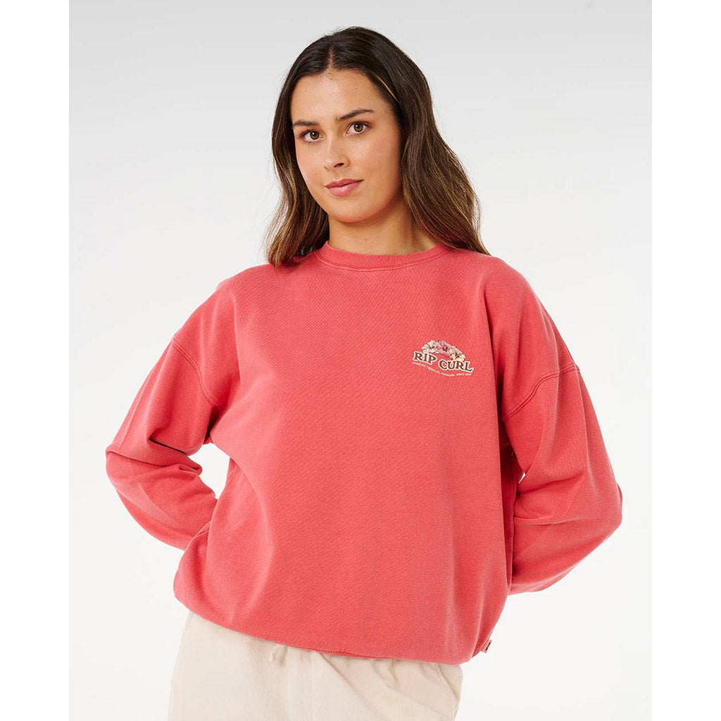 Pigment-dyed cotton and heavy enzyme wash give the Rip Curl Bells Heritage Crew its vintage surf feel, finished with front-and-back prints and a heritage fit for timeless style.