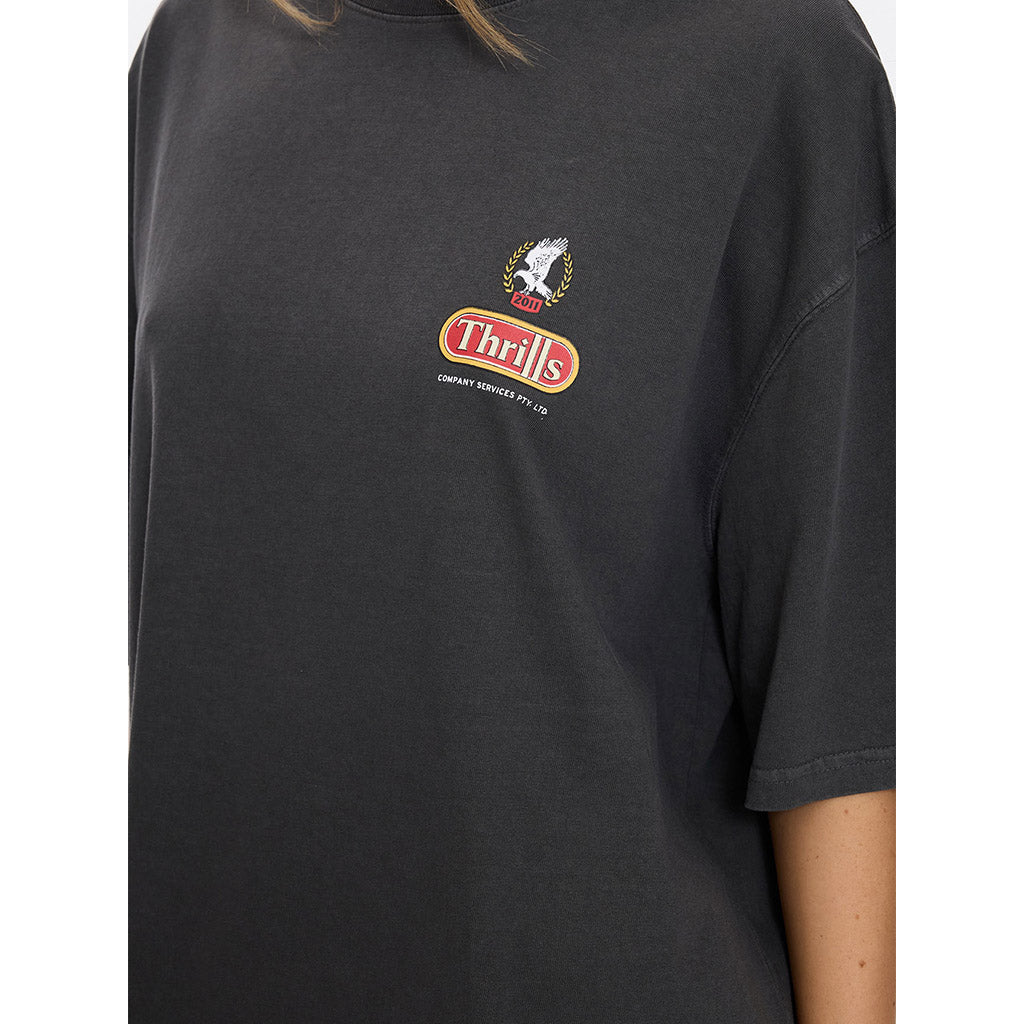Step into the unknown with the Thrills World Of Wonder Oversized Tee in Merch Black. Made from heavyweight organic cotton tee Australia jersey, its got that dry-hand feel and durability to handle all-day wear. The loose, oversized silhouette brings a slouchy vibe and ribbed neckline, while the retro Thrills chest graphic keeps it playful yet gritty. Perfect for styling with baggy low-rise denims or your favourite summer shorts.
